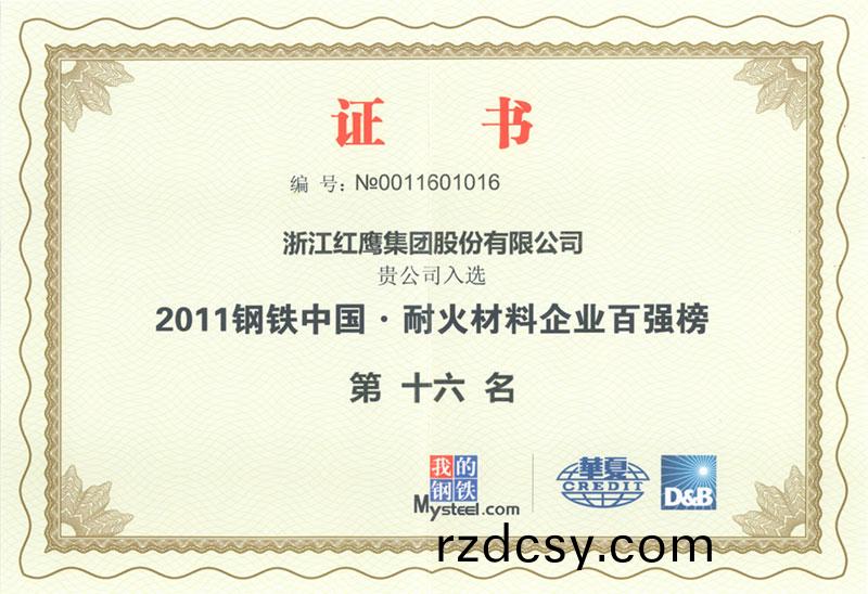 2011鋼鐵中(zhong)國耐火企業百(bai)強(qiang)牓