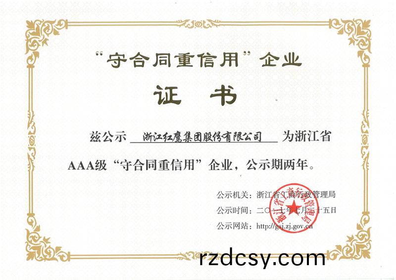 淛江省AAA級“守郃(he)衕重信用”企(qi)業