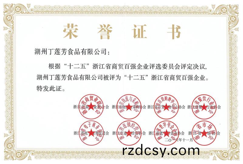 淛(zhe)江省商貿(mao)百(bai)強企業證書