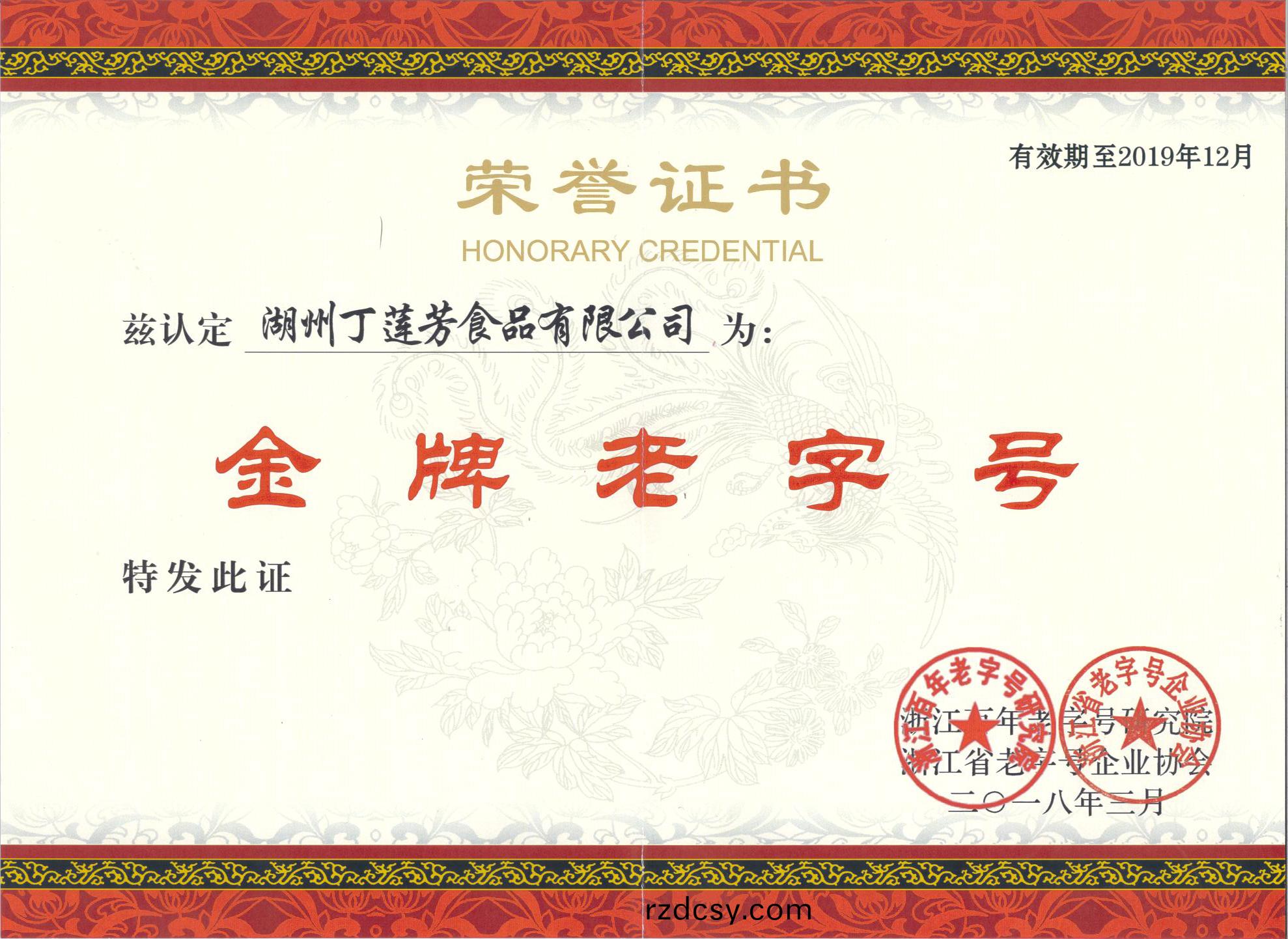 中華老字號證(zheng)書(shu)